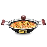 Made with good quality aluminum, this kadhai is PFOA Free and metal spoon friendly- making it scratch resistant. Besides, it comes with a tempered glass lid with a steam release vent.