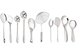 Parage's cooking and the serving set is made from food-grade stainless steel that prevents rusting. This set of 10 utensils comes with ladles, jharas, spoons and much more. The smooth edges are designed for safety.