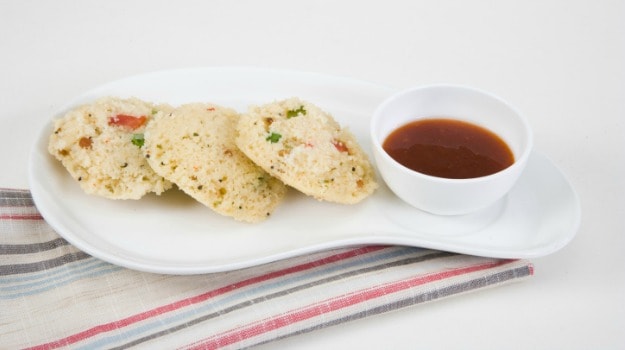 Gorgeous, soft and fluffy idlis made with rava, rice and seasonal vegetables.