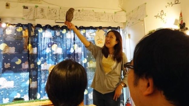 You can hang out in rabbit cafes or have coffee in Tokyo with two goats. And you're not limited to domestic animals. You can also spend an hour at a cafe holding a great horned owl. Judging by how complicated it was to get a reservation at Tokyo's Fukuro no Mise ("Shop of Owls,"), the owl cafes there are just as much of a hoot there as cat cafes are here. To get a spot, visitors are supposed to line up an hour before Fukuro no Mise opens. But when I showed up an hour early, I was lucky to get the last seat for a session two hours later. There are no refunds on the 2000 yen ($17) fee. If you're late, you lose your slot. Inside, I was given a list of detailed English instructions. For example, only touch the owls on the head or back. The woman in charge also gave a long talk and demonstration in Japanese before allowing each guest to hold a bird.
