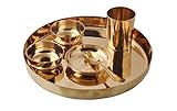 Made of 100 percent pure copper, this product comes in a set of 2 dinnerware; each of which include thali, bowls (of different sizes), glass, a spoon and fork. You may consider these utensils to enjoy your favourite biryani, daal etc to the fullest.