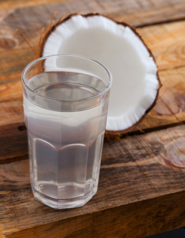 Coconut water is a real healer. It's refreshing and an excellent substitute for a sugar based energy drink. It's rich in potassium which helps counter sodium-induced bloating. Coconut water not only flushes the sodium out of the body but also helps by boosting circulation.