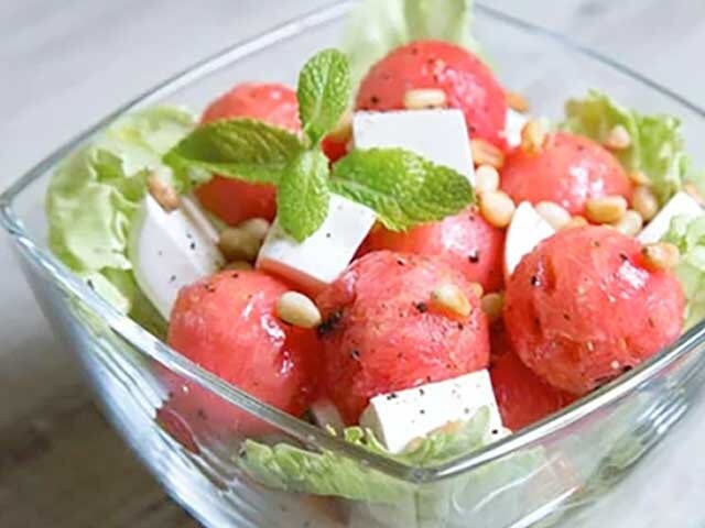 A quick salad that only takes around 20 minutes. Your kitchen is likely to have watermelon cubes, cucumbers, onions, pomegranate juice, mustard paste, and a few more standard items. All you have to do is mix them, and a salad is ready!