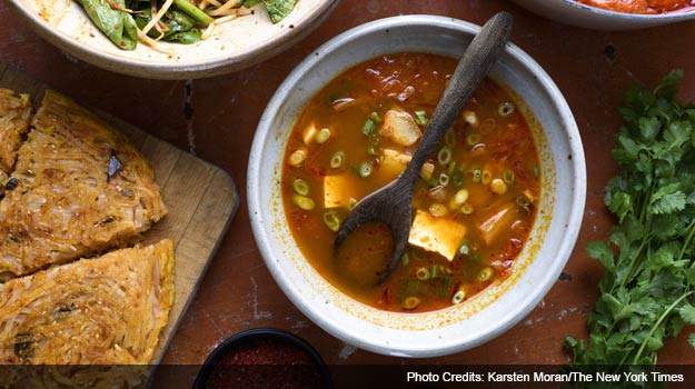 The best example is jigae (or chigae), a hearty traditional kimchee soup in which pork belly and kimchee simmer together until the whole is truly greater than the sum of its parts. Chun, who is also the author of the "The Kimchi Cookbook," makes a vegetarian version that uses butter and olive oil instead of pork to enhance the flavor, producing what she described as a "great vegetal complexity." She also sautés kimchee with brown butter and capers, for a twist on the French classic sole meunire.